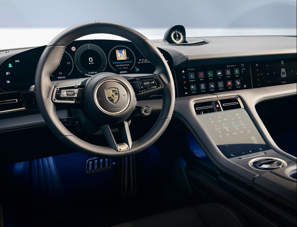 Inside, the Taycan offers a driver-focused yet luxurious cabin, with: